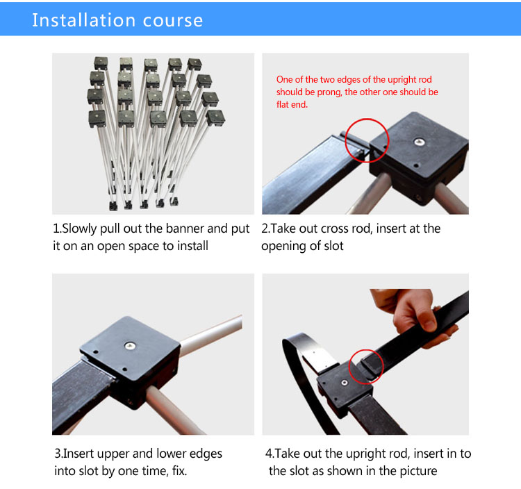 It can be used for domestic and overseas exhibition, conference, portable, equipped with independent flight case, the frame of which is made of strong magnet structure and qualified aluminium alloy. Beautiful and taste, easy to be installed- shape up automatically once being pulled, people could complete it within 20 minutes independently even if having never operated such product before.